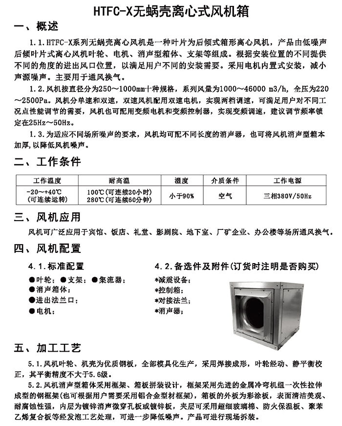 一、HTFC(DT)-I、II、V 系列低噪声消防排烟(两用)风机箱