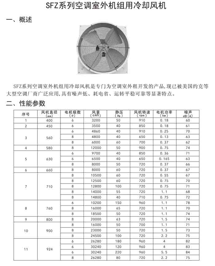 十、SFZ 系列空调室外机组冷却风机